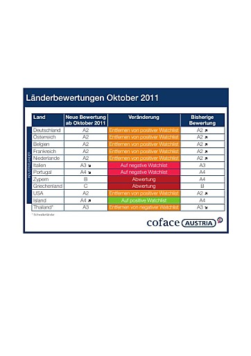 Coface Bewertung Von Landerrisiken Verschlechterung In Europa Und Den Usa Coface Austria Kreditversicherung Ag 25 10 11