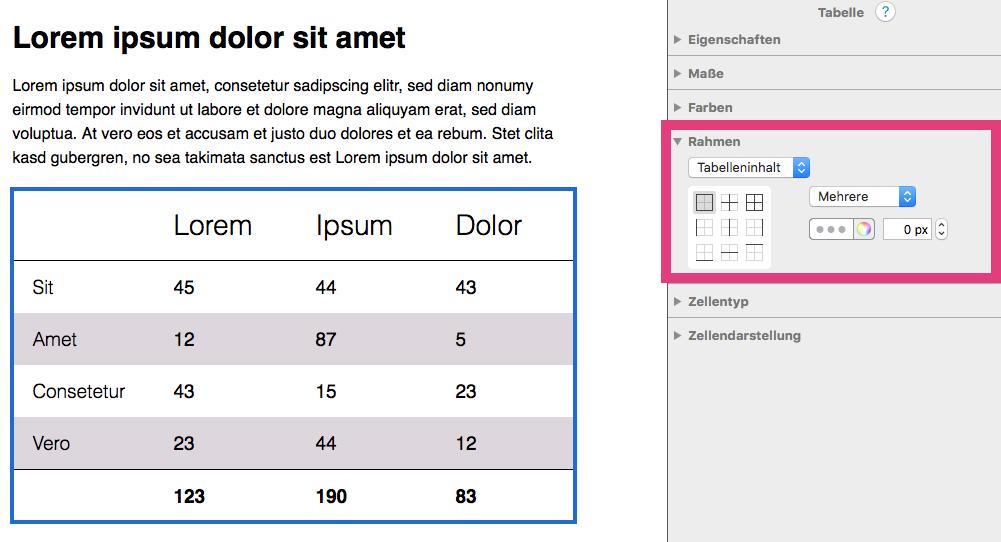 Tabelle Mit Gitterlinien Aber Ohne Aussenrahmen