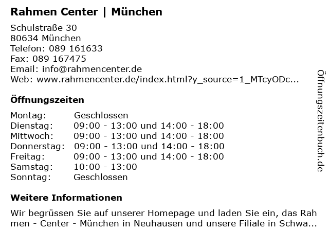 ᐅ Offnungszeiten Rahmen Center Bilderrahmen Munchen Clemensstrasse 22 In Munchen