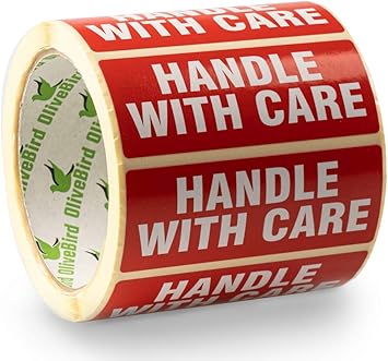 500 Handle With Care Aufkleber Selbst Haftetiketten Auf Rollen Grosse Heisskleber Permanente 90x35mm Amazon De Burobedarf Schreibwaren