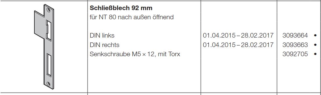 Hormann Ersatzteil Schliessblech 92 Mm Din Links Fur Nt 80 Nach Aussen Offnend Fur Die Industrietor Baureihe 50 Metallbau Berkau De
