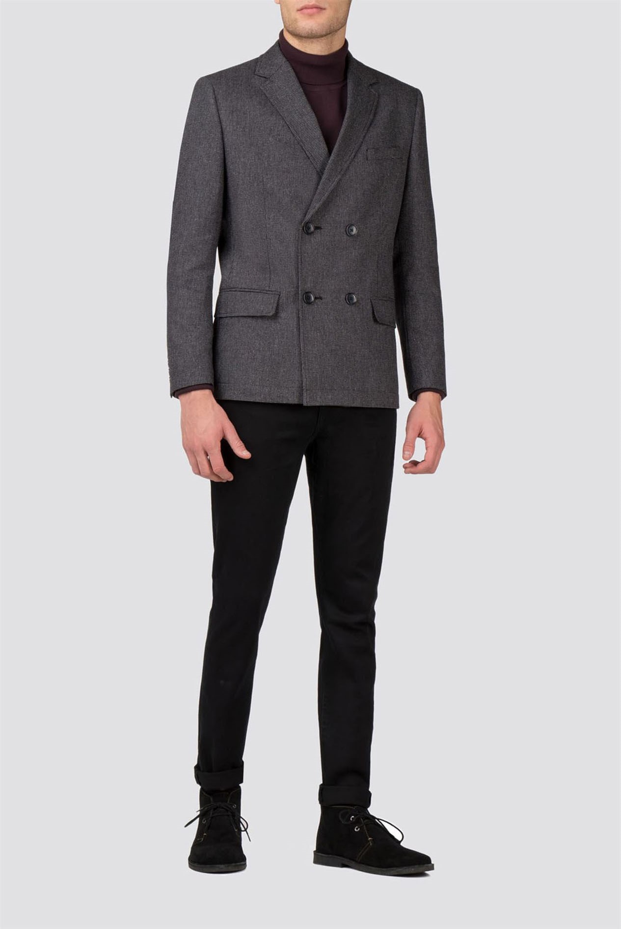 Villa Soft Grey Wool Double Breasted Blazer Reiss