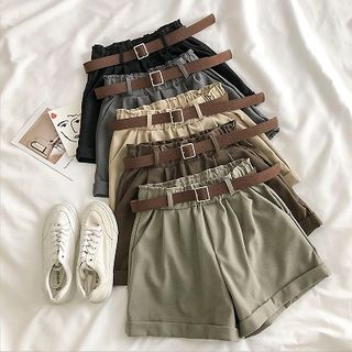 Diyi Plain Roll Up High Waist Corduroy Shorts With Belt Yesstyle