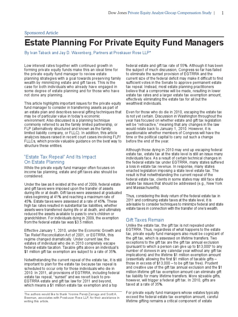Pea Comp Study Estate Planning For Private Equity Fund Managers Itaback Jwaxenberg 10 10 2 Estate Tax In The United States Gift Tax In The United States