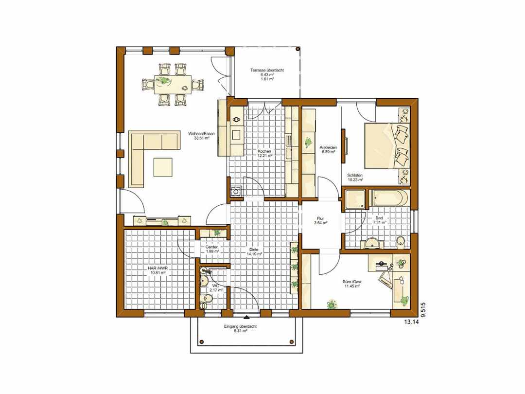 Der Bungalow 110 Grundriss Erdgeschoss Ihr Town Country Massivhaus