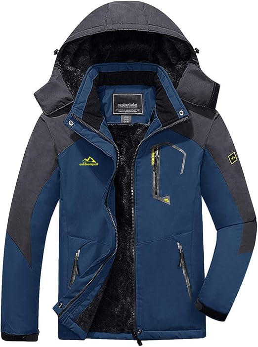 Kefitevd Herren Skijacke Atmungsaktiv Warm Gefuttert Winterjacke Mit Abnehmbarer Kapuze Snowboardjacke Wasserdicht Outdoorjacke Amazon De Bekleidung
