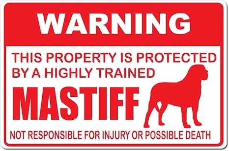 Amazon Com Dark Spark Decals Warning This Property Is Protected By A Highly Trained Mastiff Dog Not Responsible For Injury Or Death 15 X10 Caution Sign Made In The Usa Home