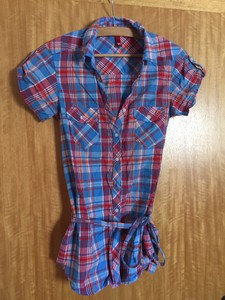 Karierte Lange Bluse Rot Hellblau Gr 34 Neu Ebay