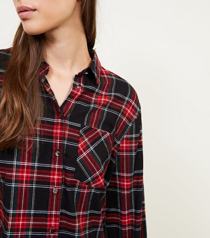 Karierte Lange Bluse In Schwarz New Look