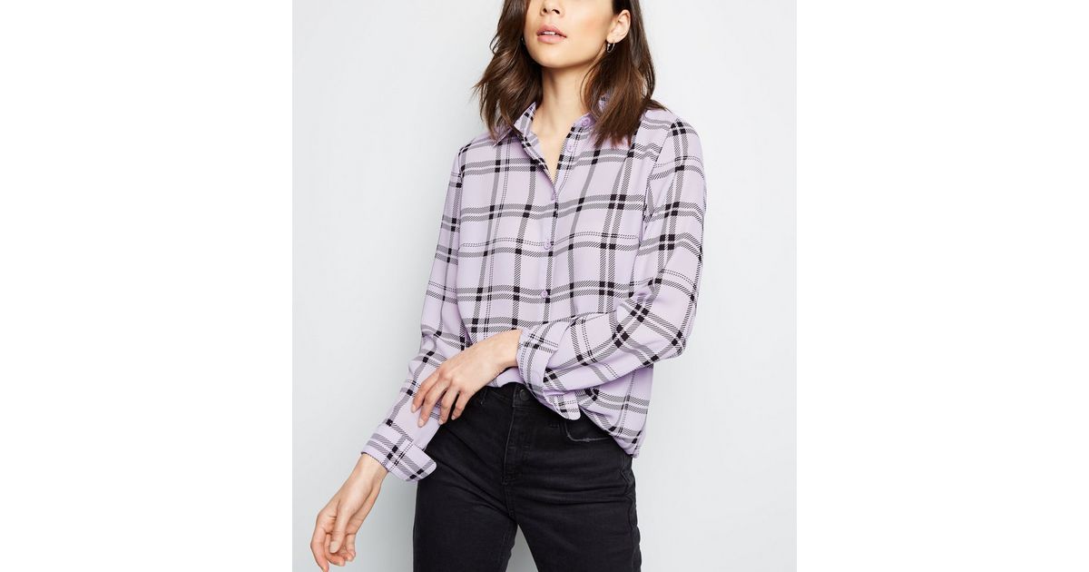 Karierte Lange Bluse In Helllila New Look