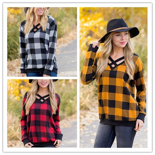 Karierte Bluse Elegant Herbst Fruhling Streetwear Damen Frauen Mode Lange Armel V Ausschnitt Bluse Casual Buro Ol Hemd Shirt Oberteile Grosse Grossen Drei Farben Amazon De Bekleidung