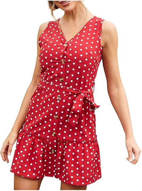 Kleid Ohne Armel Damen Kurzarm Sommerkleider V Ausschnitt Vintage Knopfe Kleid Strandkleider V Ausschnitt Punkte Sommerkleid Ruschen Minikleid Amazon De Baumarkt