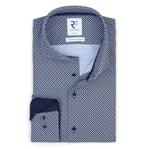 Weisser Grafischer Print 4 Way Stretch Hemd R2 Amsterdam