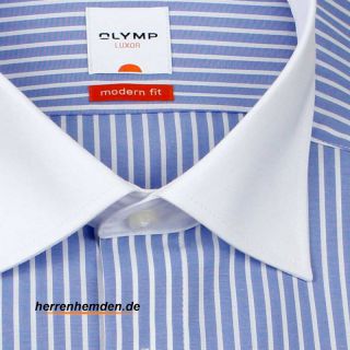 Olymp Luxor Hemd Modern Fit Streifen Langarm Weisser Kragen Ohne Brus 49 95