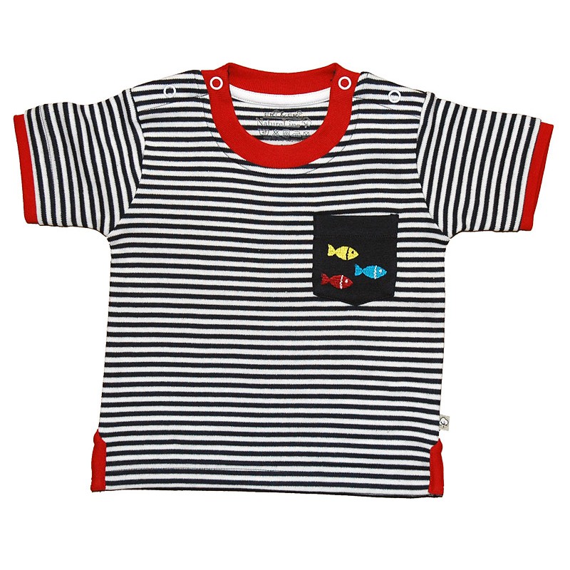 Frugi Blau Weiss Gestreiftes T Shirt Mit Witzigen Fischen Im Online Shop