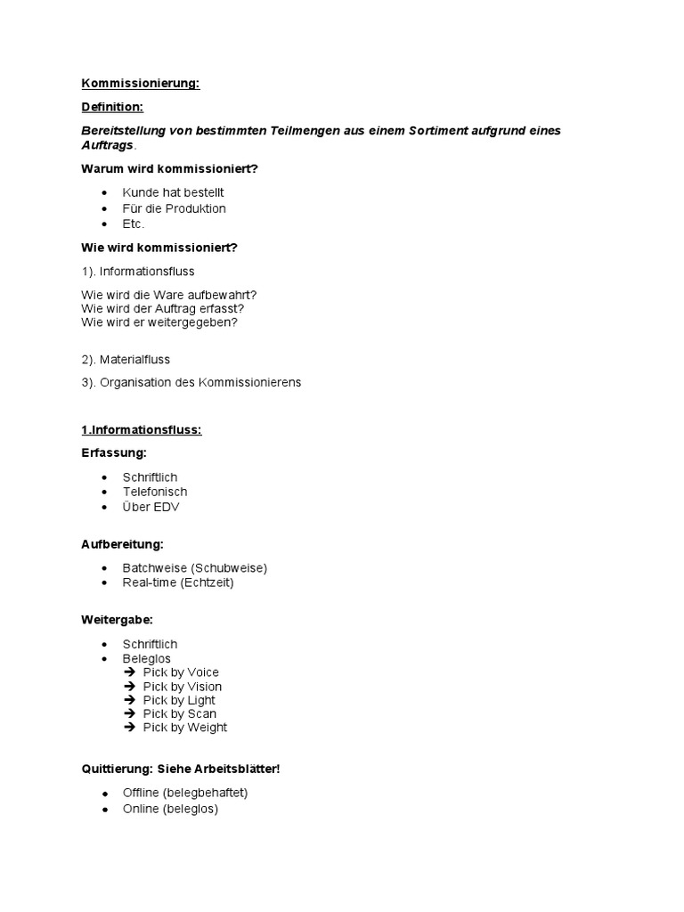 Die serienorientierte, parallele Kommissionierung ist ohne den Einsatz eines EDVSystems kaum umsetzbar Dabei werden mehrere Aufträge gleichzeitig in mehreren Lagerbereichen bearbeitet Eine Besonderheit dabei ist, dass Teile, die im zu kommissionierenden Auftrag enthalten sind, auch gleich mit den zeitgleich zu kommissionierenden Aufträgen abgeglichen werden und sofort mit ausgelagert werden. Die Serienorientierte, parallele Kommissionierung ist ohne den Einsatz eines Kommissionierer (unterschiedliche Pickzeiten in den Lagerzonen) gegenüber Fachkraft für Lagerlogistik Lernkarten SE 25. Serienorientierte, parallele Kommissionierung Bearbeiten Quelltext bearbeiten Bei der auch MultiOrderPicking genannten Kommissionierung werden die Auftragseingänge zu Serien zusammengefasst und innerhalb einer Serie auf die Positionen der einzelnen Lagerzonen aufgeteilt Somit kann ein Artikel, der in mehreren Aufträgen vorhanden ist.