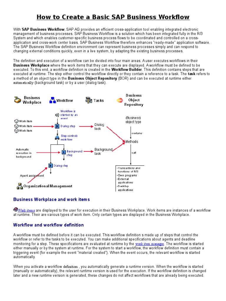 SAP Business Process Management Building a Workflow from Scratch In this eLearning session you will learn how to build a simple workflow, including how to test a workflow and adding an event to the workflow View this Demo Duration Ginger Gatling October , 12 at 0150 AM 52 Likes. SAP Business Workflow ABAP Development ABAP Extensibility SAP S/4HANA SAP Supply Chain Management 8 Comments 7 Likes Srividya Gundappagari posted on November 5, Technical Articles Changing Workitem Initiator in a Workflow. Workflow Management (SAP Business Workflow) Getting Started Working with the Development Environment Tasks Integration Reference.