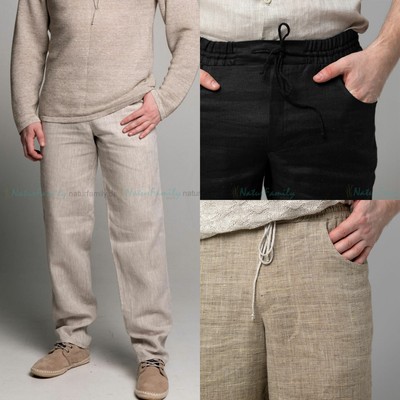 Herren Leinenhose Hose Aus 100 Leinen Mit Elastischem Bund Regular Oko 15 Ebay