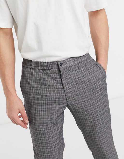 Hellgraue Karierte Hose Mit Elastischem Bund New Look