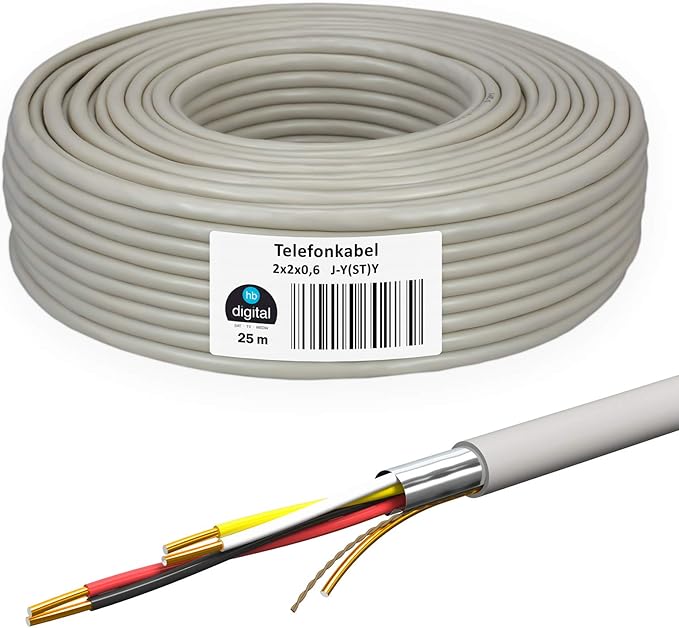 Hb Digital Telefonkabel 25m 2 X 2 X 0 6 J Y Y Amazon De Elektronik
