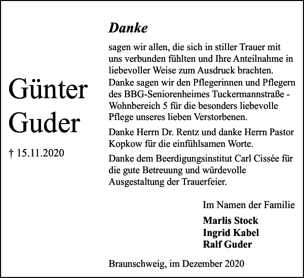 Gunter Guder Danksagung Braunschweiger Zeitung