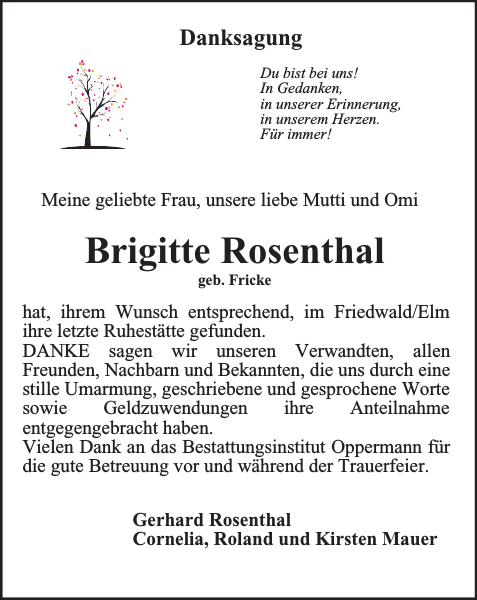 Brigitte Rosenthal Danksagung Braunschweiger Zeitung