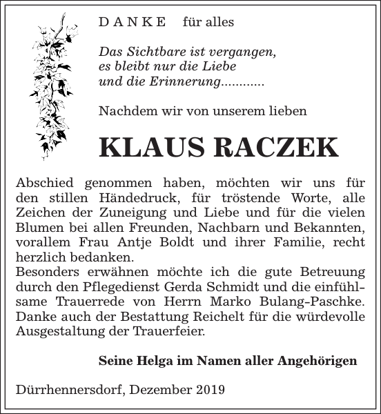 Klaus Raczek Danksagung Sachsische Zeitung
