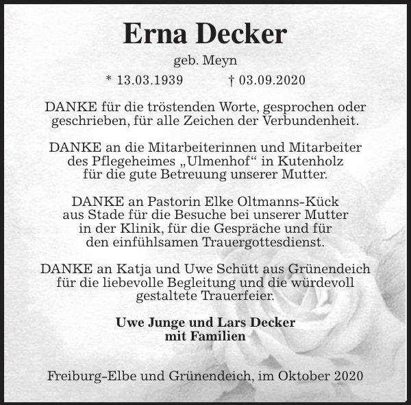 Erna Decker Danksagung Stader eblatt