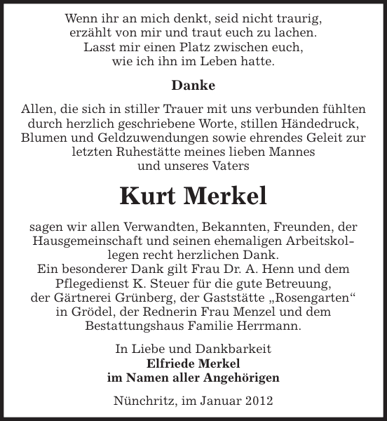 Kurt Merkel Danksagung Sachsische Zeitung