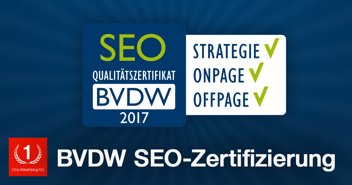One Advertising Ag Erhalt Auch 17 Das Seo Zertifikat Des Bvdw Diva E Digital Value Excellence Gmbh Pressemitteilung Pressebox