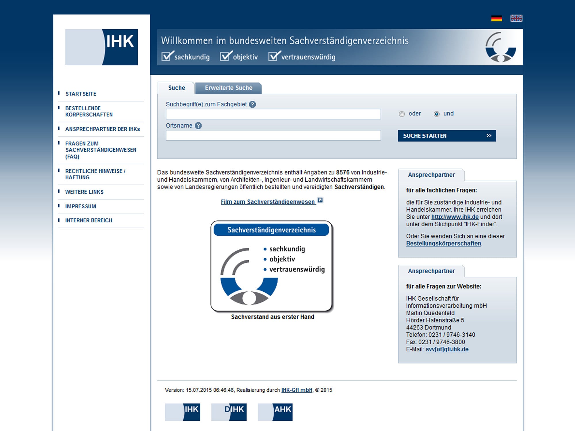 Außenstelle West Frankenallee 260. Öffentlich bestellte und vereidigte Sachverständige finden Das bundesweite Sachverständigenverzeichnis online unter wwwsvvihkde enthält Angaben zu über 8000 von Industrie und Handelskammern, von Architekten, Ingenieur und Landwirtschaftskammern sowie von Landesregierungen öffentlich bestellten und vereidigten Sachverständigen aus mehr als 280 Sachgebieten. Öffentlich bestellte und vereidigte Sachverständige finden Das bundesweite Sachverständigenverzeichnis online unter wwwsvvihkde enthält Angaben zu über 8000 von Industrie und Handelskammern, von Architekten, Ingenieur und Landwirtschaftskammern sowie von Landesregierungen öffentlich bestellten und vereidigten Sachverständigen aus mehr als 280 Sachgebieten.