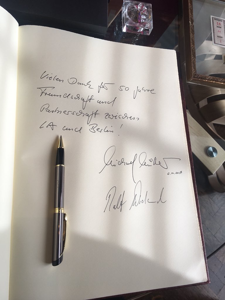 Bjorn Bohning Eintrag Ins Gastebuch Der Stadt Los Angeles Berlinla50 Senatskanzlei B Brunshildburg