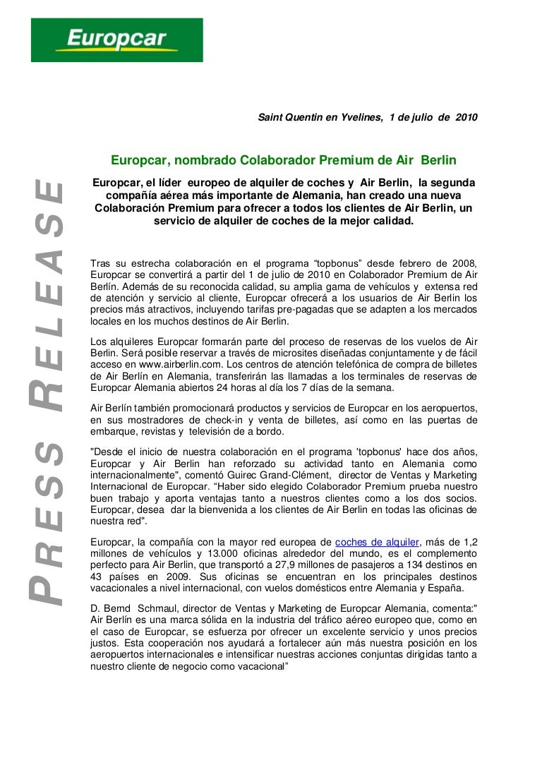 Europcar Nombrado Colaborador Premium De Air Berlin