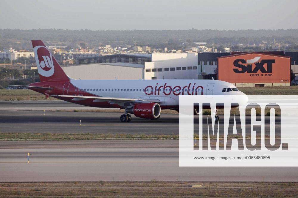 Stockfoto Flieger Von Airberlin Vor Werbung Autovermiet
