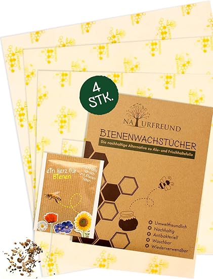Naturfreund Bienenwachstucher 4er Set Lfgb Zertifiziert Fur Lebensmittel Inkl Gratis Saatmischung Zur Bienenrettung 100 Prozent Naturliche Alternative Zu Frischhaltefolie Zerowaste Amazon De Kuche Haushalt