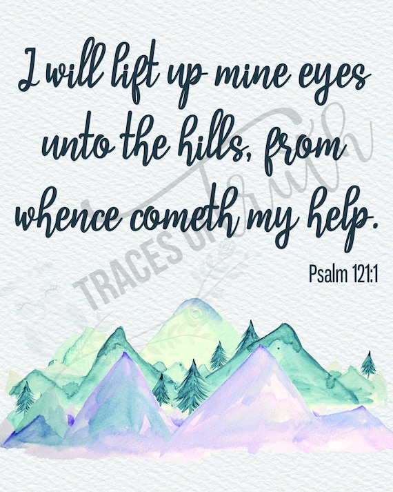 Psalm 121 is the 121st psalm of the Book of Psalms The beginning in English, in the King James Version, is "I will lift up mine eyes unto the hills, from whence cometh my help" In the Greek Septuagint version of the bible, and in the Latin Vulgate, this psalm is Psalm 1 in a slightly different numbering system. Psalm 121, Psalm 121 Printable Bible Verse Art, Look to the Hills Help Comes from the Lord, Bible Verse Wall Art, Quote Wall Art Print PDF GlintPrint From shop GlintPrint 5 out of 5 stars (672) 672 reviews Sale.