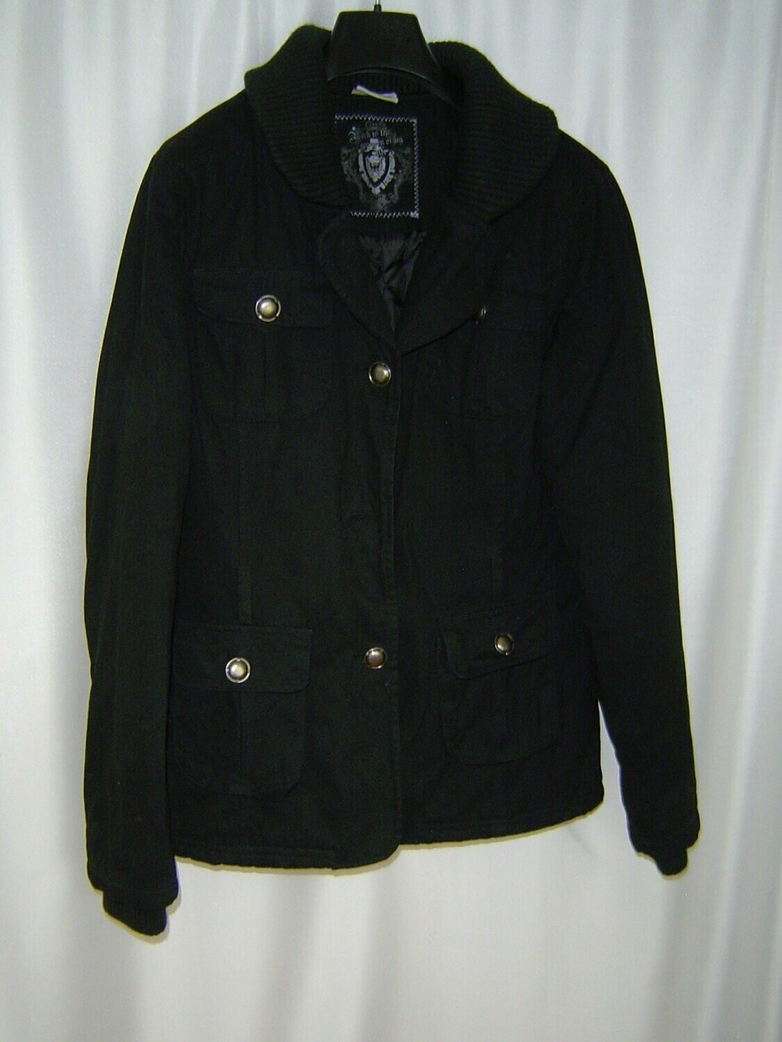 Colours Of The World Jacke Gr 164 M Warm Schwarz Wattiert Strick Kragen Bundchen
