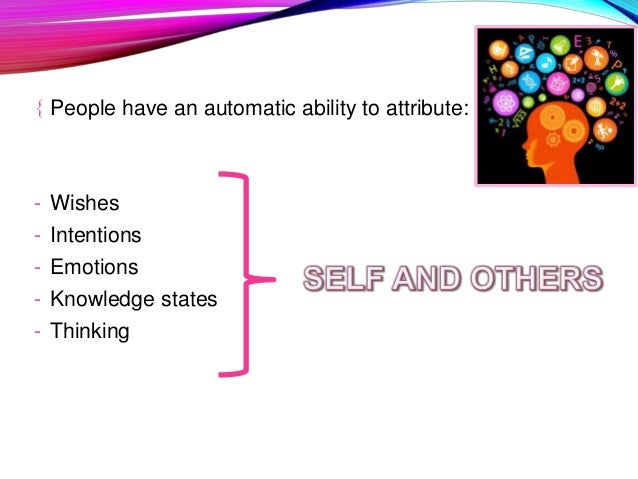 Dual process theories of Mind are theories of Mind that are supported by literally thousands of experimental studies In dualprocess theories of the Mind two major information processing systems. Theory of Mind and Aging Theory of Mind and Culture Is Theory of Mind what we call "wisdom"?. The ability to understand that other people have thoughts, knowledge, and feelings that are not the same as yours Older children have developed a theory of mind;.