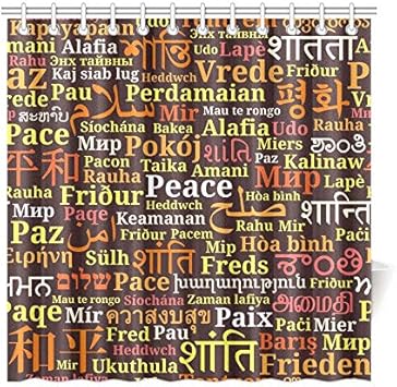 Qiaolii Wohnkultur Bad Vorhang Worte Frieden Verschiedene Sprachen Polyester Stoff Wasserdicht Duschvorhang Fur Badezimmer 72x72 Zoll Duschvorhang Haken Enthalten Amazon De Kuche Haushalt