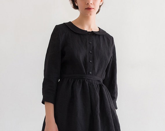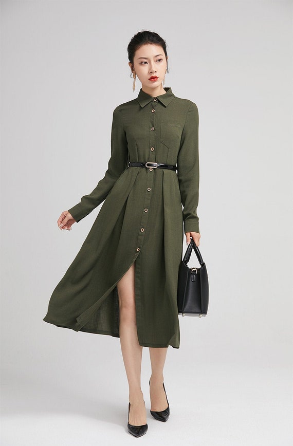 Elegante Leinen Kleid Mit Turndown Kragen Frei Silhouette Etsy