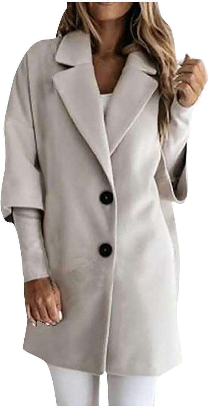 Womteam Damen Revers Knopf Winter Langmantel Einfarbig Turn Down Kragen Mantel Damen Business Anzug Strickjacke Jacke Blazer Tops Amazon De Bekleidung