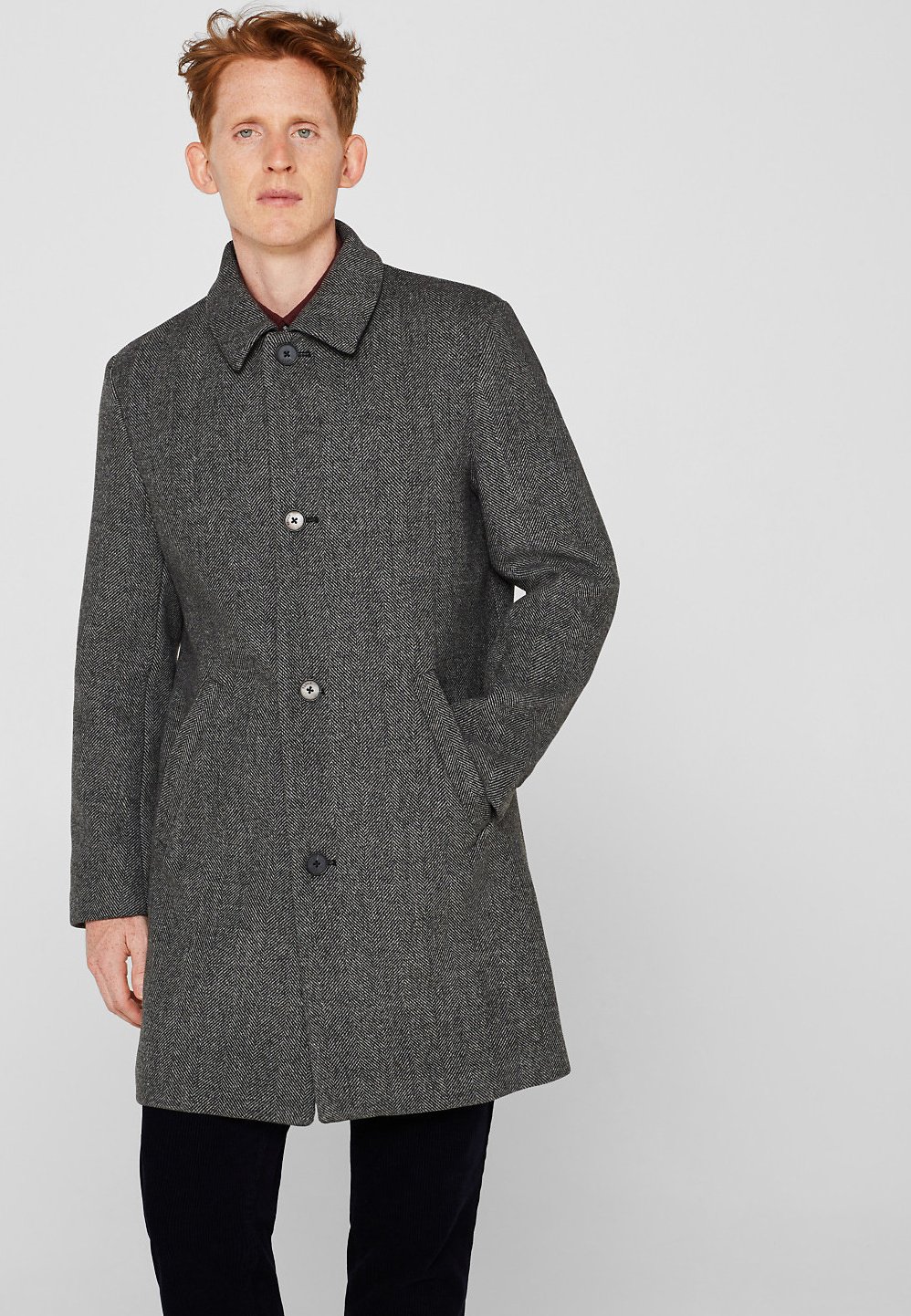 Esprit Mit Turn Down Kragen Wollmantel Klassischer Mantel Grey Grau Zalando De