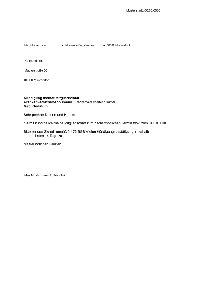 Kündigungsschreiben Krankenkasse richtig kündigen Vorlage Kündigungsschreiben für alle gesetzlichen Krankenkassen Kündigungsfrist Krankenkasse rechtzeitig kündigen Kündigungsfrist beträgt in der Regel zwei Monate;.