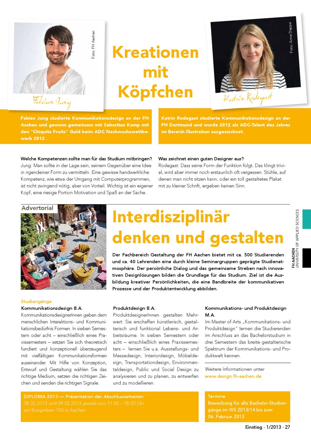 Studiengang Kommunikationsdesign (Vollzeitstudium) Hochschule FH Dortmund Abschluss Bachelor of Arts Regelstudienzeit 7 Semester / 210 ECTS Punkte. DiplomDesigner (FH) Creative Director, Print Management, Spätschicht Ausbildung Studium im Fachbereich für Kommunikationsdesign an der FH Dortmund Praxissemester bei Nordisk Büro Frankfurt aM Studium im Fachbereich für Kommunikationsdesign an der FH Würzburg frey@dortmundbeachcom Christian Tacke DiplomDesigner (FH). Das Studium Kommunikationsdesign an der Fh Dortmund geht 7 Semester lang und ist vor allem für Studenten mit Vorliebe für grafisches Design ein Muss Aber auch weitere tolle Schwerpunkte wie Typographie oder Fotografie bietet der Studiengang in Dortmund an Projektarbeiten sollen, in Zusammenarbeit mit den anderen Studiengängen, die.
