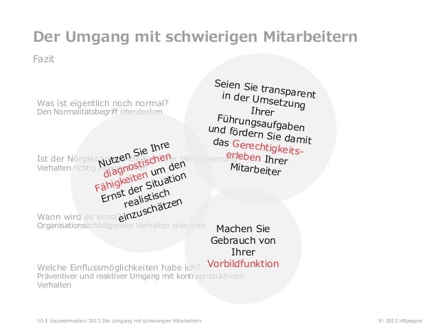 Arbeitsrecht Umgang mit schwierigen Mitarbeitern Häufige kurze Erkrankungen, mangelnde Arbeitsleistung, Verletzung arbeitsvertraglicher Pflichten Drei Beispiele zeigen, wie Arbeitgeber mit schwierigen Mitarbeitern umgehen sollten Es gibt Mitarbeiter und Mitarbeiterinnen, mit denen die Zusammenarbeit aus unterschiedlichen Gründen schwierig ist. Seminar Umgang mit schwierigen Mitarbeitern;. Mita rbeiter / Mitarbeiterin mit vertretbarem Aufwand ab zu stell en?.