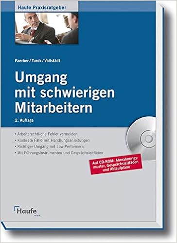 Der konsequente Umgang mit schwierigen Mitarbeitern ist der notwendige und einzig richtige Weg Nicht resignieren, sondern konsequent einen überlegten Weg gehen Allerdings muss auch klar sein, dass der Weg im Umgang mit schwierigen Mitarbeitern steinig und beschwerlich ist Es kostet Zeit und ein hohes Maß an Frustrationstoleranz. Umgang mit schwierigen Mitarbeitern Herausfordernde Mitarbeiter wirksam führen, Konflikte lösen, rechtliche Fehler vermeiden (Haufe Praxisratgeber). Umgang mit schwierigen Mitarbeitern Author Yvonne Faerber, Daniela Turck, Dr Oliver Vollstädt, Patrick Wiederhake Created Date 6/24/16 AM.
