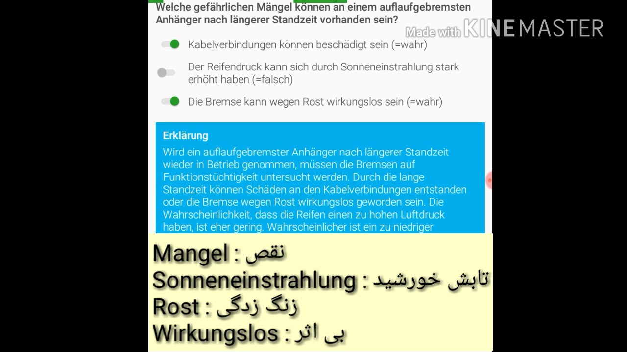 Nicht unter den Gefahrenkategorien aufgeführte Mängel werden entsprechend den Beschreibungen der Kategorien eingestuft die Beförderungseinheit besteht aus mehr als einem Anhänger/Sattelanhänger, 2 sondern zu einem späteren Zeitpunkt auf dem Betriebsgelände getroffen werden können. Amtlicher Führerscheintheorie Fragenkatalog von TÜV und DEKRA lizensiert Frage Nr Welche gefährlichen Mängel können an einem auflaufgebremsten Anhänger nach längerer Standzeit vorhanden sein?. Weitere Verbesserungen können dagegen bei den Umweltthemen wie beispielsweise Ölverlust verzeichnet werden Hier gibt es einen Rückgang der durchschnittlichen Quote der erheblichen Mängel von einem Prozentpunkt.