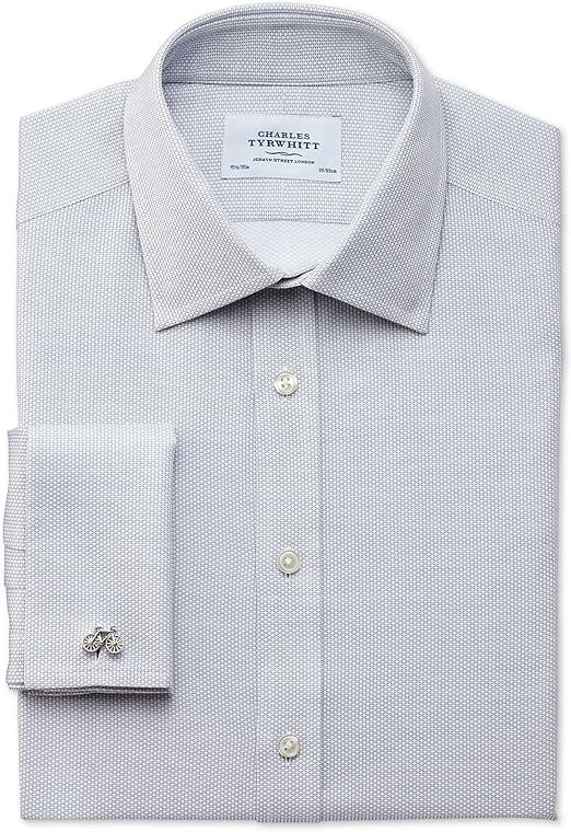 Slim Fit Hemd Aus Agyptischer Baumwolle In Hellgrau Mit Diamant Struktur Umschlagmanschette Amazon De Bekleidung