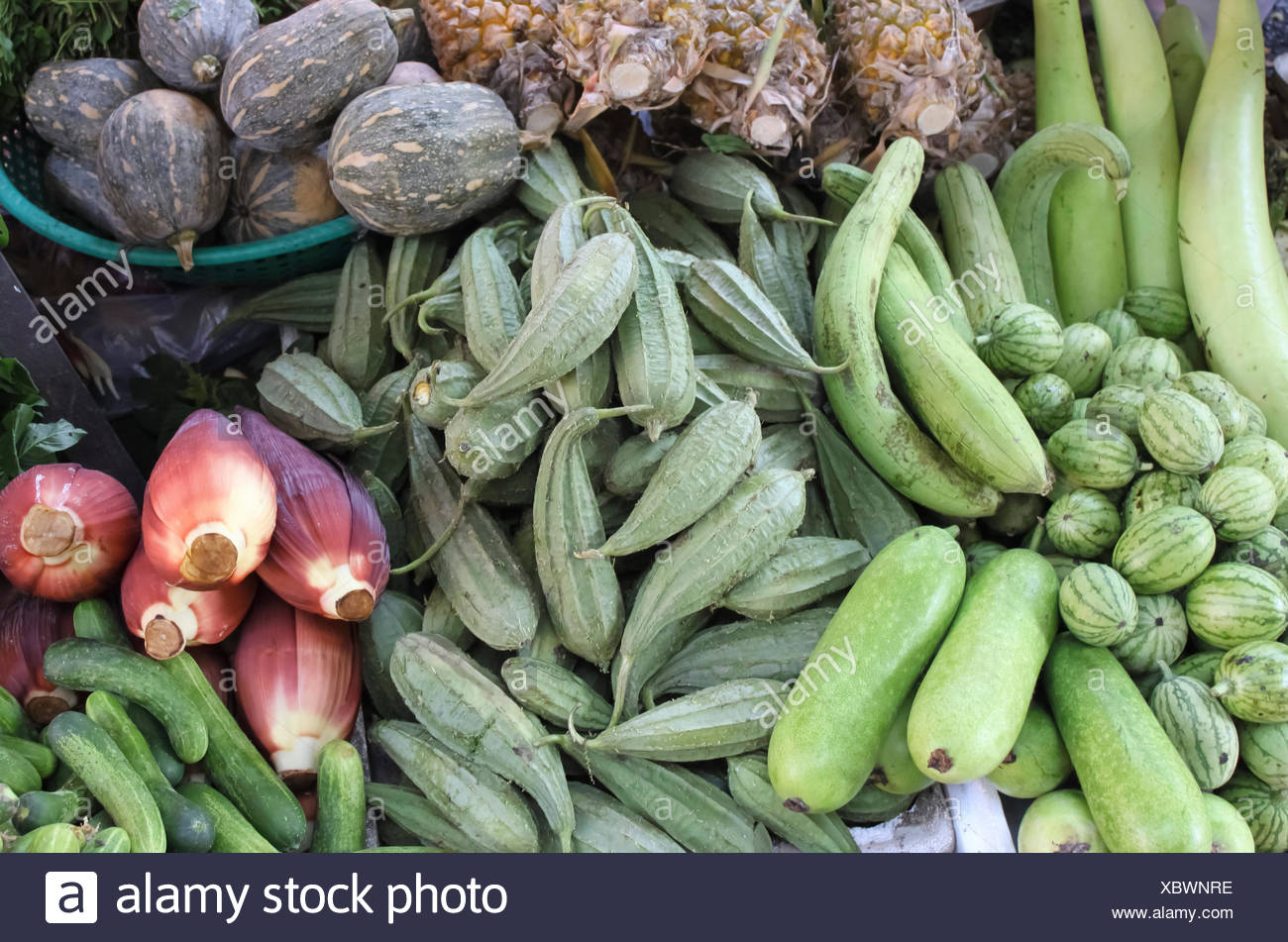 Asiatische Gemuse Sortiment Wie Die Grunen Bitteren Kurbis Und Ei Anlage In Hoi An In Vietnam In Asien Vielzahl Von Lokalen Material Auf Vietnamesische Stre Stockfotografie Alamy