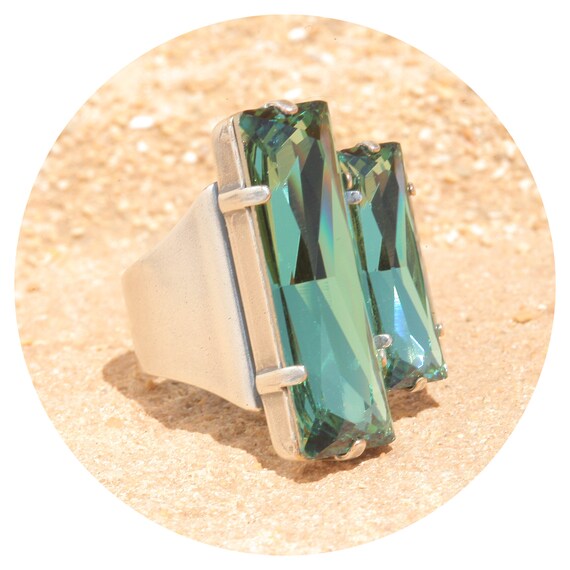 Artjany Ring Swarovski Kristall Baguette Erinite Grun Silber Etsy